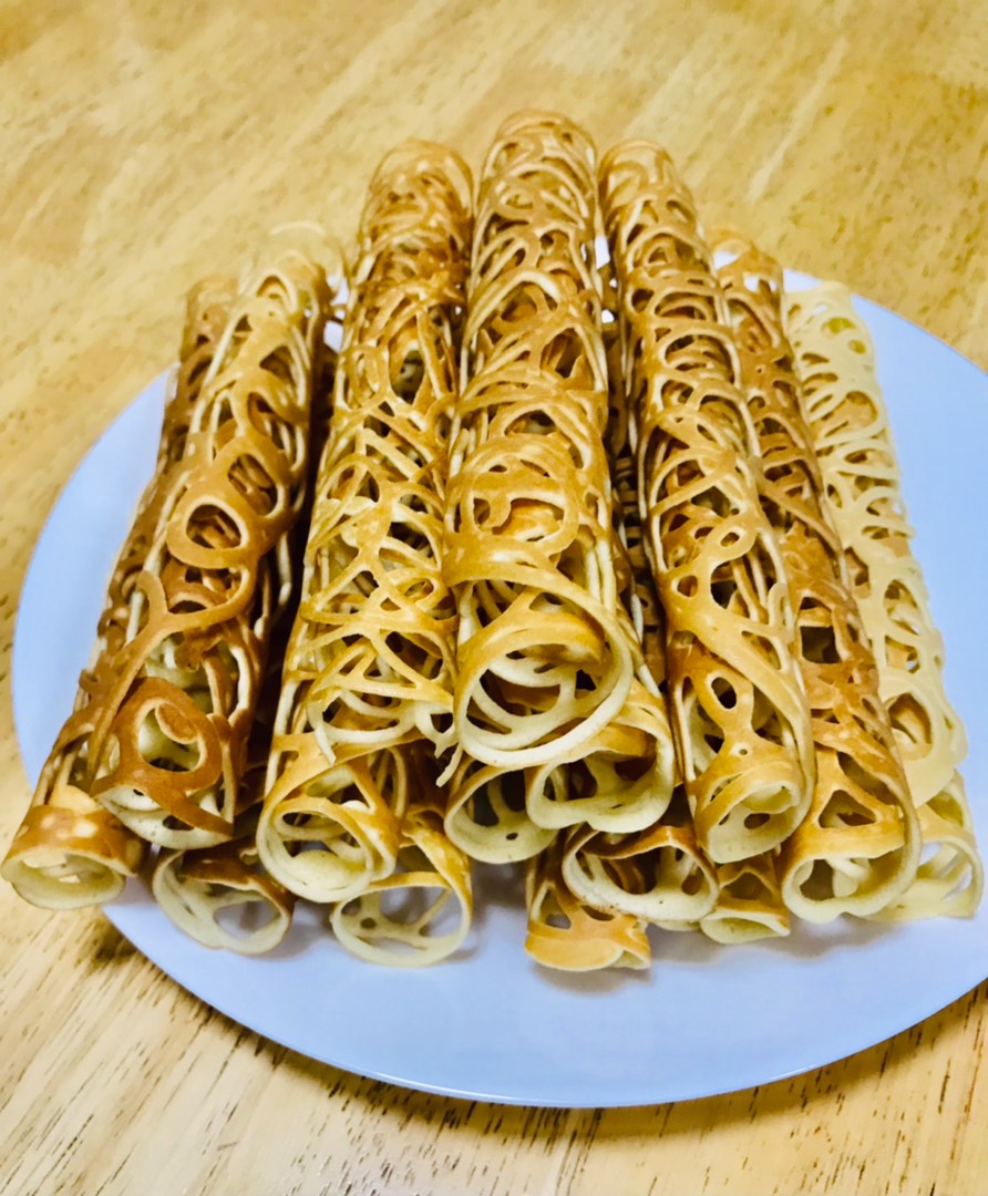 Легкие и воздушные блины с ажурным узором, наполненные аппетитной сырной начинкой, подаются с теплым сливочным соусом и свежими зелеными травами.